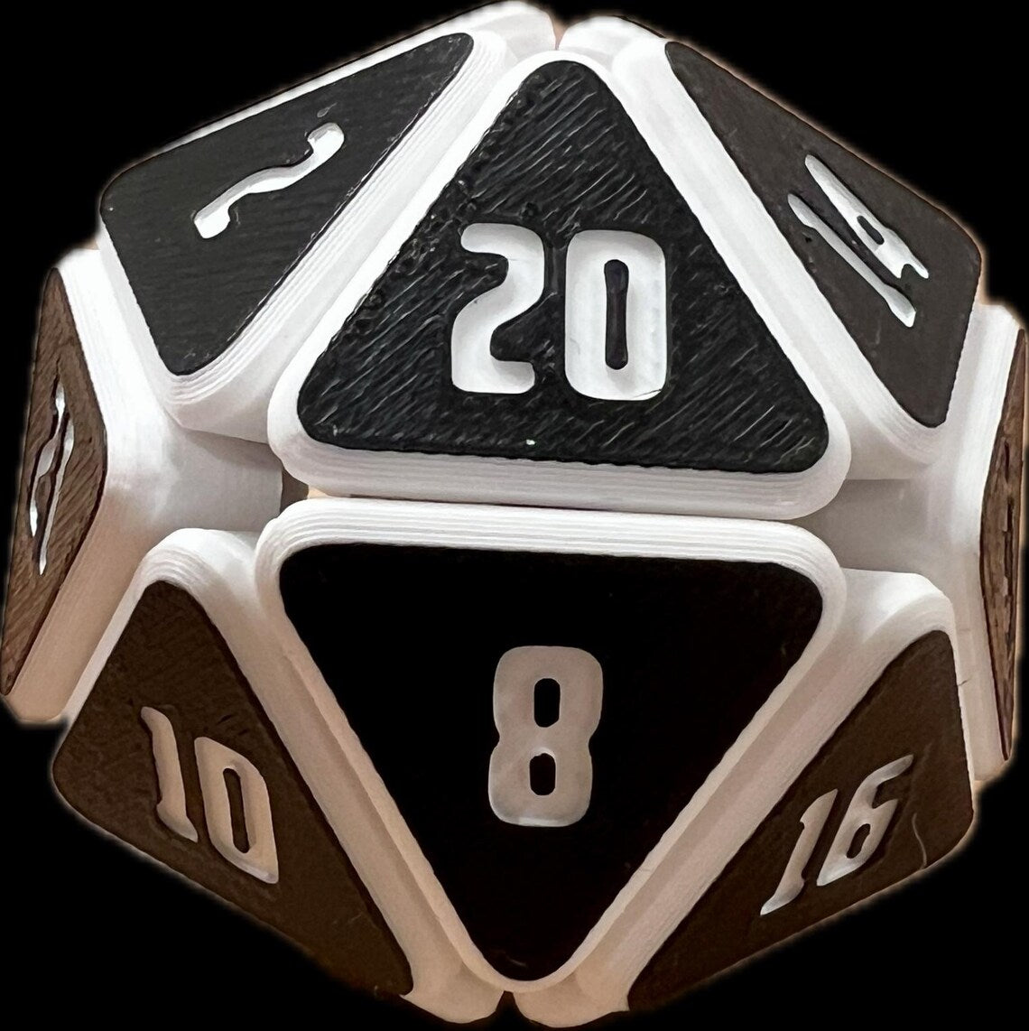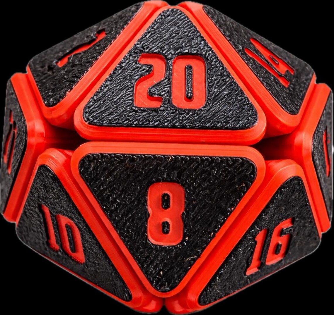 These one-of-a-kind Squishy D20 Dice are 3D printed and hand-assembled with elastic cord, creating a satisfyingly squeezable fidget that’s as fun to handle as it is to show off.